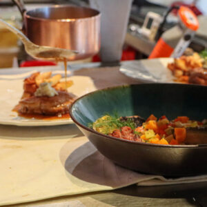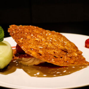 Dans sa cuisine toute vitrée ouverte sur la salle, le chef Ludovic Launay s’affaire avec son équipe à combler ses clients de partitions plus goûteuses les unes que les autres, s’assurant d’un regard furtif que tout va bien en salle. Et défilent entre autres dans un ballet parfaitement réglé, Saint-Jacques aux Agrumes, Langoustines en Cheveux d’Anges, Filet de Bar Sauvage ou autre Bouillabaisse Tourangelle. Le Chef pratique une cuisine terre-mer, inspirée, raffinée et gourmande afin de régaler les amateurs de goût et de légèreté. Et que dire de sa carte de vins qui fait la part belle à la région. L’Arche de Meslay est l’une des tables références de Touraine fréquentée par bien des amateurs et qui fait l’unanimité auprès d’une clientèle exigeante.