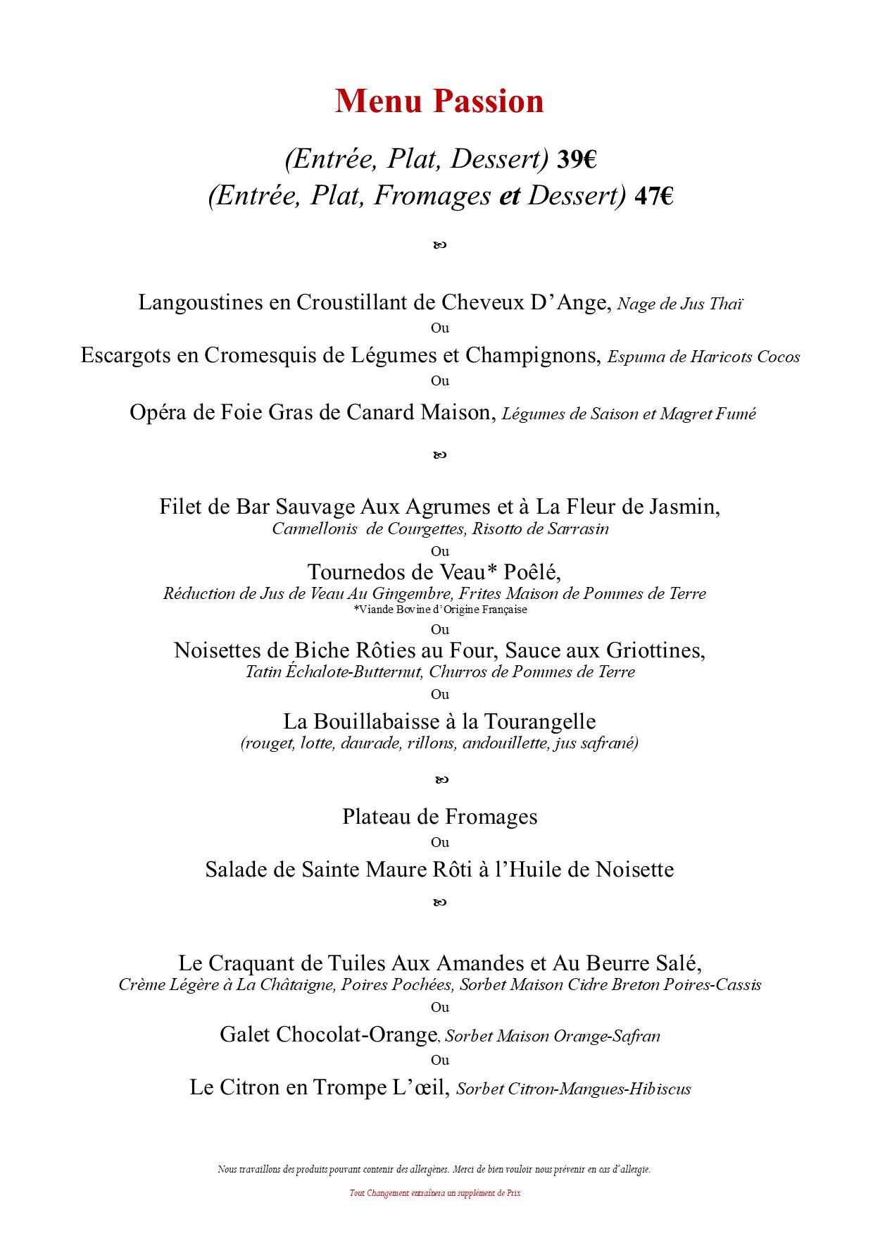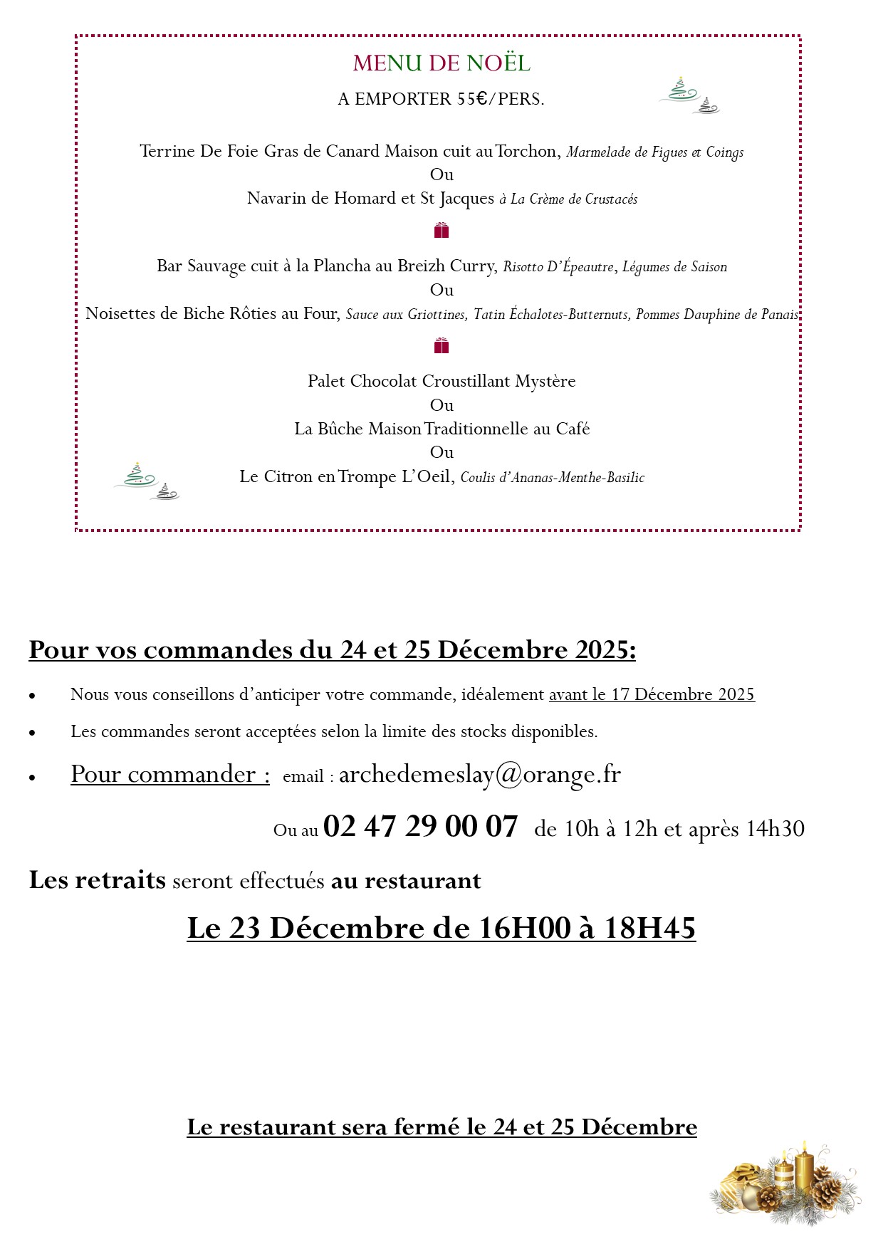 Dans sa cuisine toute vitrée ouverte sur la salle, le chef Ludovic Launay s’affaire avec son équipe à combler ses clients de partitions plus goûteuses les unes que les autres, s’assurant d’un regard furtif que tout va bien en salle. Et défilent entre autres dans un ballet parfaitement réglé, Saint-Jacques aux Agrumes, Langoustines en Cheveux d’Anges, Filet de Bar Sauvage ou autre Bouillabaisse Tourangelle. Le Chef pratique une cuisine terre-mer, inspirée, raffinée et gourmande afin de régaler les amateurs de goût et de légèreté. Et que dire de sa carte de vins qui fait la part belle à la région. L’Arche de Meslay est l’une des tables références de Touraine fréquentée par bien des amateurs et qui fait l’unanimité auprès d’une clientèle exigeante.